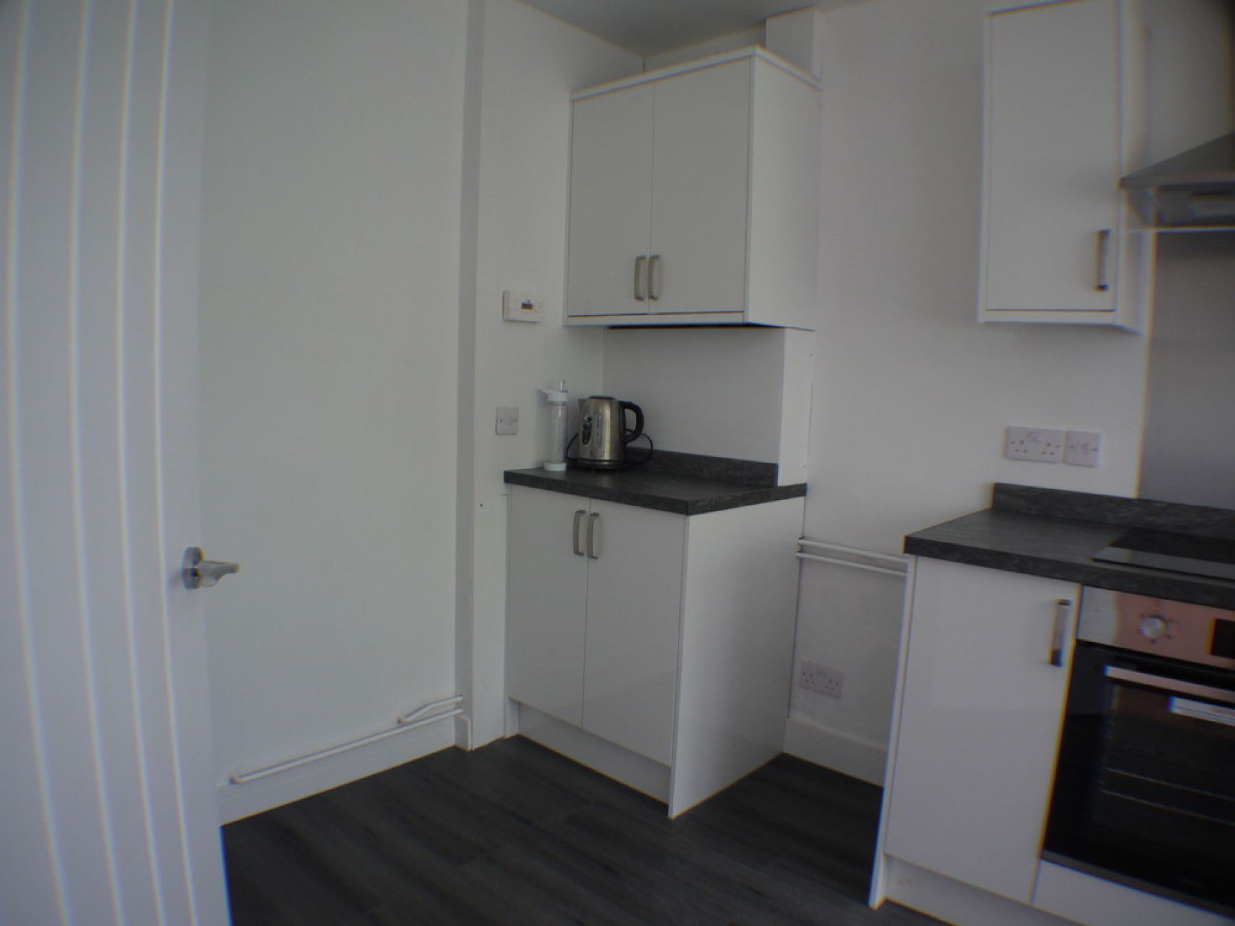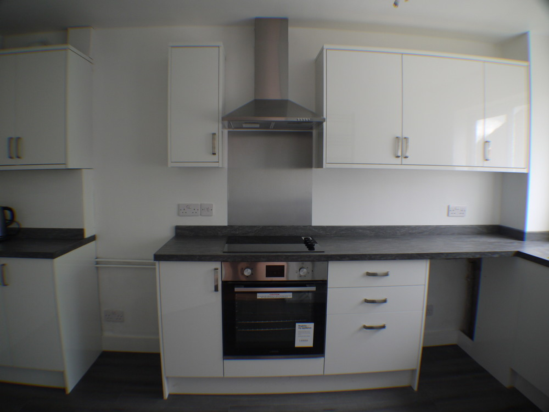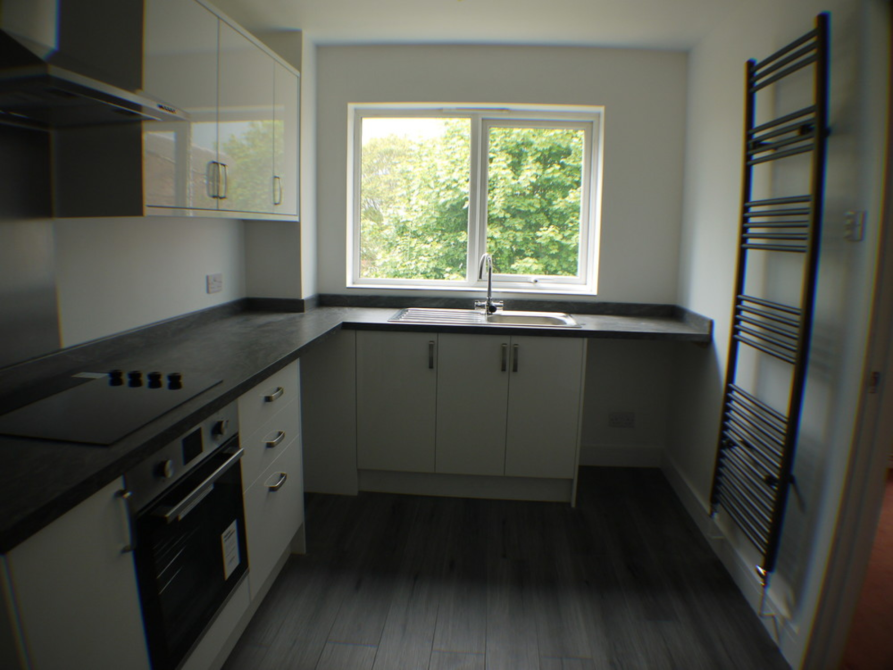 Kitchen: 4.2m x 2.4m - A modern kitchen, fitted to a very high standard. A large window with attractive views makes the room light and airy. There are a range of modern high gloss white wall and base units, built in electric oven and ceramic hob with stainless steel extractor hood over. Spaces for a washing machine and a fridge/freezer. There is also space for a small kitchen table and chairs. Large ladder type towel rail /radiator.