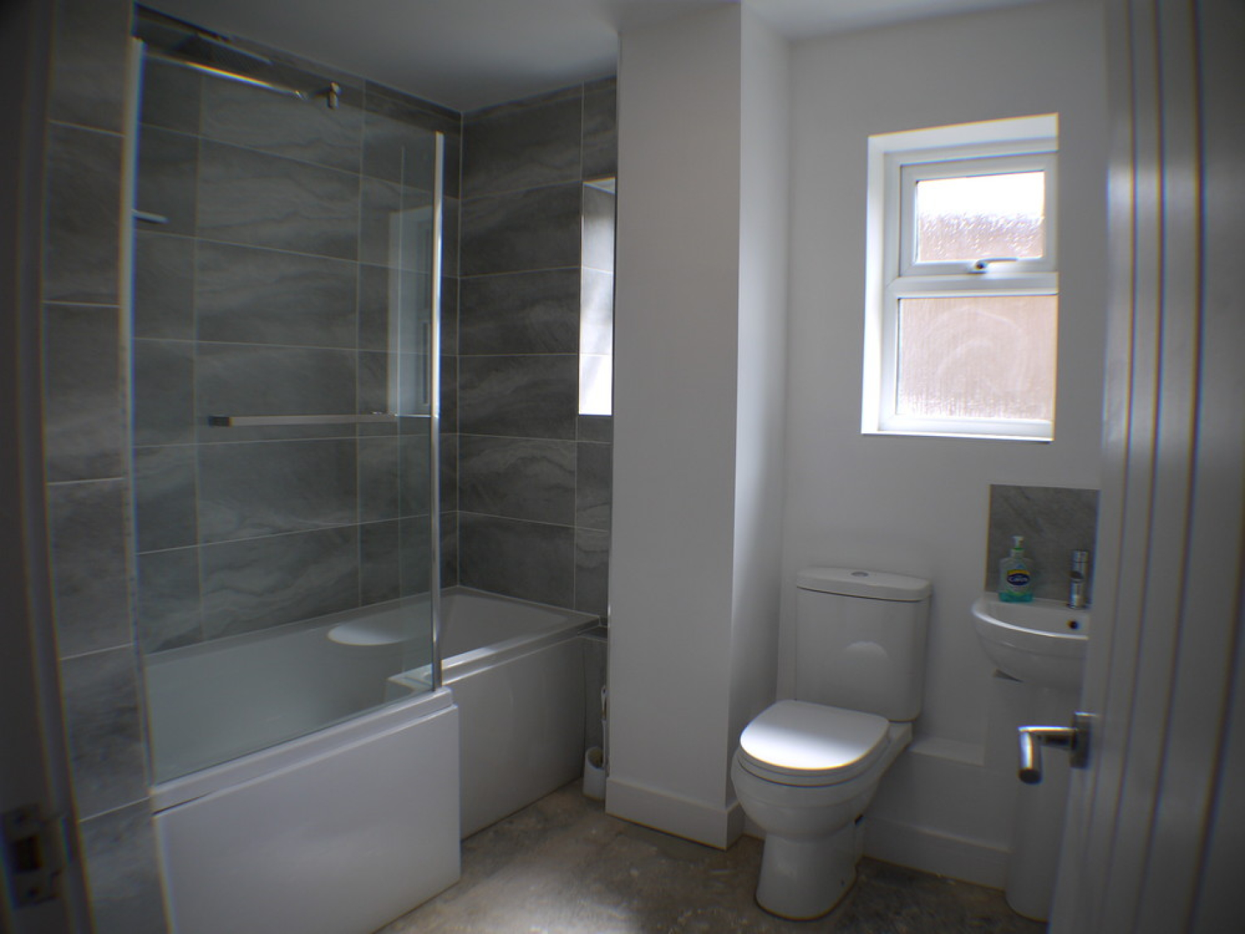 Bathroom – modern bathroom with high quality fittings consisting of an L-shaped bath with monsoon type shower over and glass screen, pedestal type wash basin and WC. 2 windows make this room light and airy. Ladder type towel rail /radiator.