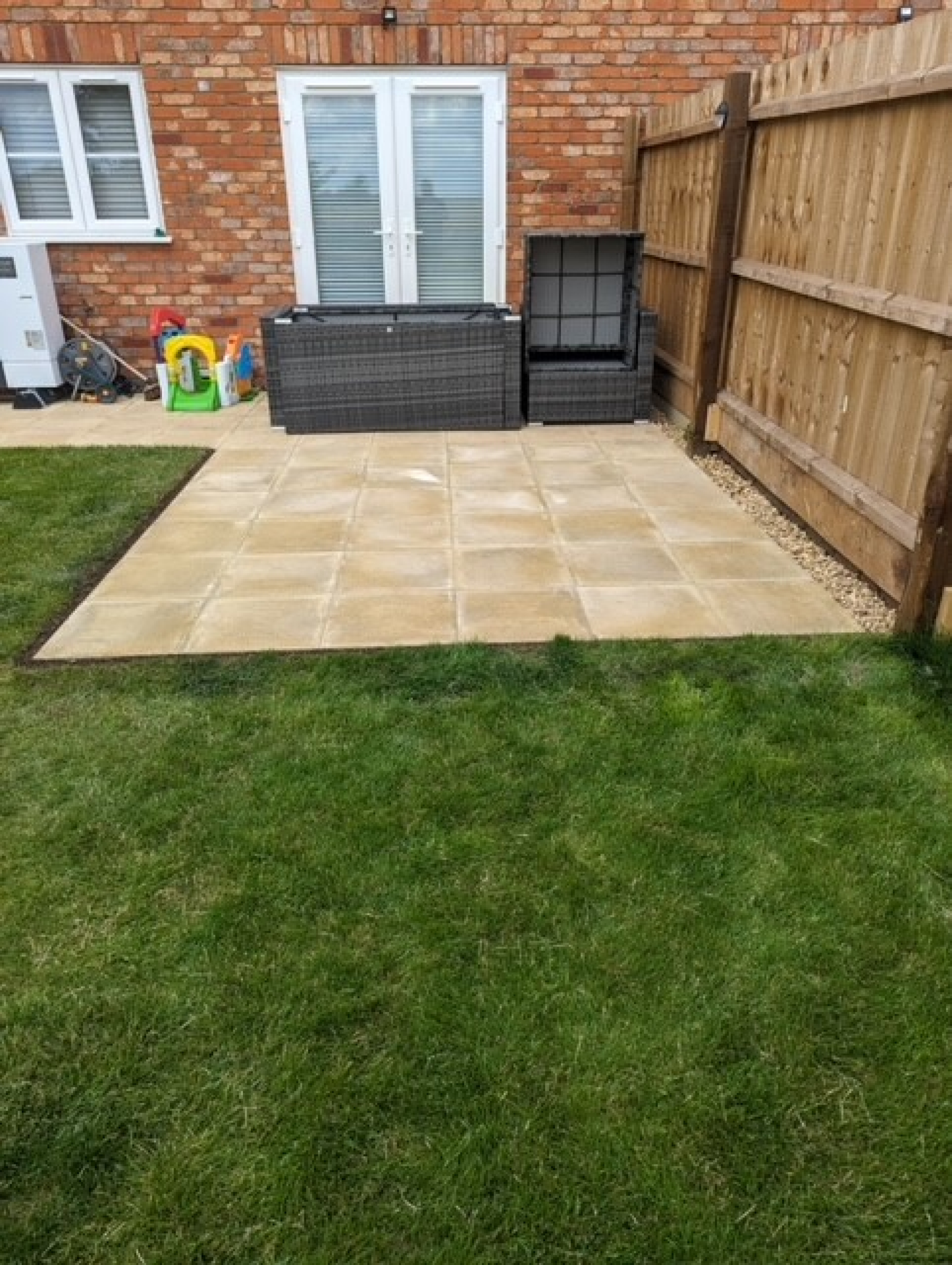 Block paved, off road parking for 2 cars. Paved pathway to front door with small soil border that could be